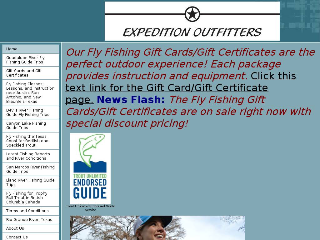 | Description | Fly fishing guide service for Central Texas based in Austin, Texas. Guided fishing trips on the Guadalupe River, San Marcos River and the Colorado River as well as other Texas Hill Country rivers. |