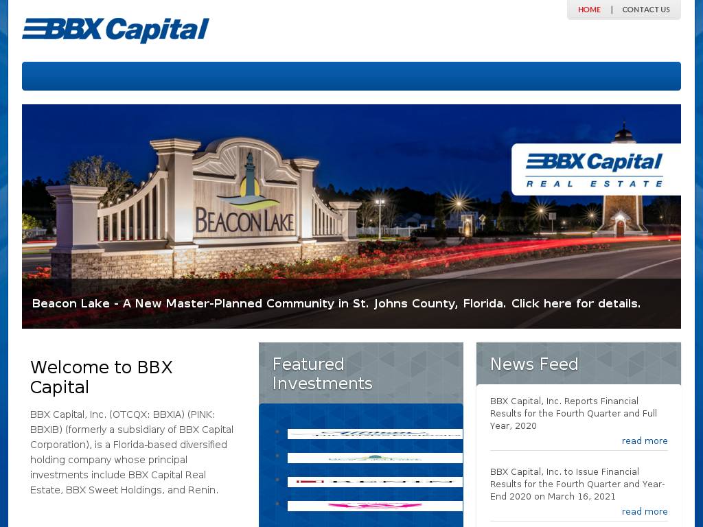 | Description | BBX Capital Corporation (NYSE: BBX, OTCQX: BBXTB) is involved in the acquisition, ownership, management, joint ventures and investments in real estate and real estate development projects, as well as acquisitions, investments and management of middle market operating businesses. |