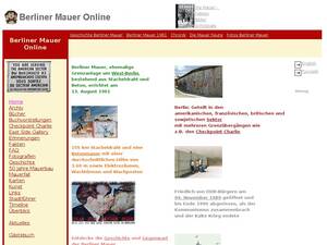 | Description | Geschichte der Berliner Mauer vom Mauerbau bis Mauerfall und Wiedervereinigung. Gelungene und gescheiterte Fluchten sowie Portraits von Todesopfern der Berliner Mauer dargestellt durch Texte, Dokumente, Fotos und Videos. |