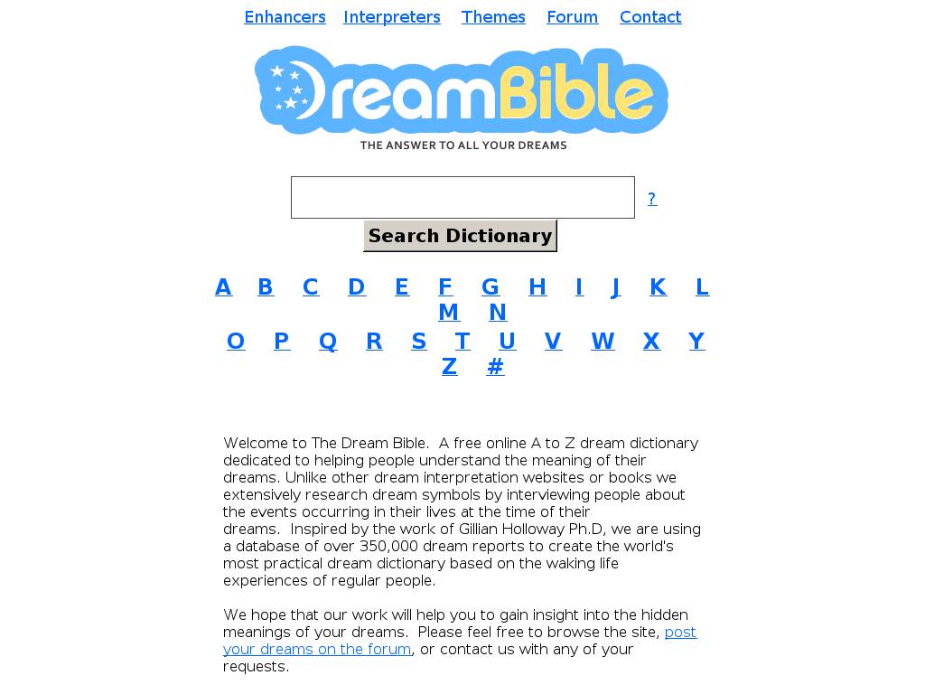 | Description | Free online dream interpretation site with many dreams searchable easily and conveniently. Look up dream dictionary, dream symbols, dream meanings, analyze dreams. |