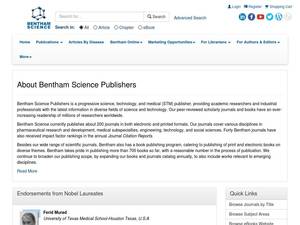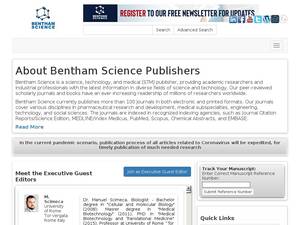 | Description | Bentham Science publishes Books in all areas of Science, Technology, Medicine, including Agriculture, Chemistry, Computer & Information Sciences, Earth & Environmental Sciences, Engineering & Technology, Life Sciences, Material Sciences, Mathematics & Statistics, Medicine, Nanoscience, Pharmaceutical Sciences, Physics & Astronomy, Social Sciences. |