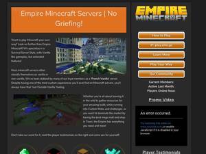 Empire Minecraft is a set of Minecraft Survival Servers that focuses on the base Vanilla Minecraft Server gameplay, with extra changes to make the game more fun.