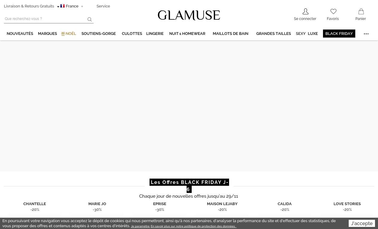 | Description | Le grand site de lingerie de luxe ! Profitez du plus grand choix de lingerie femme : Aubade, Lise Charmel, Wacoal, Antigel, Chantelle, Simone Pérèle... Expédition 24H et Livraison gratuite* dès 69€ d'achats |