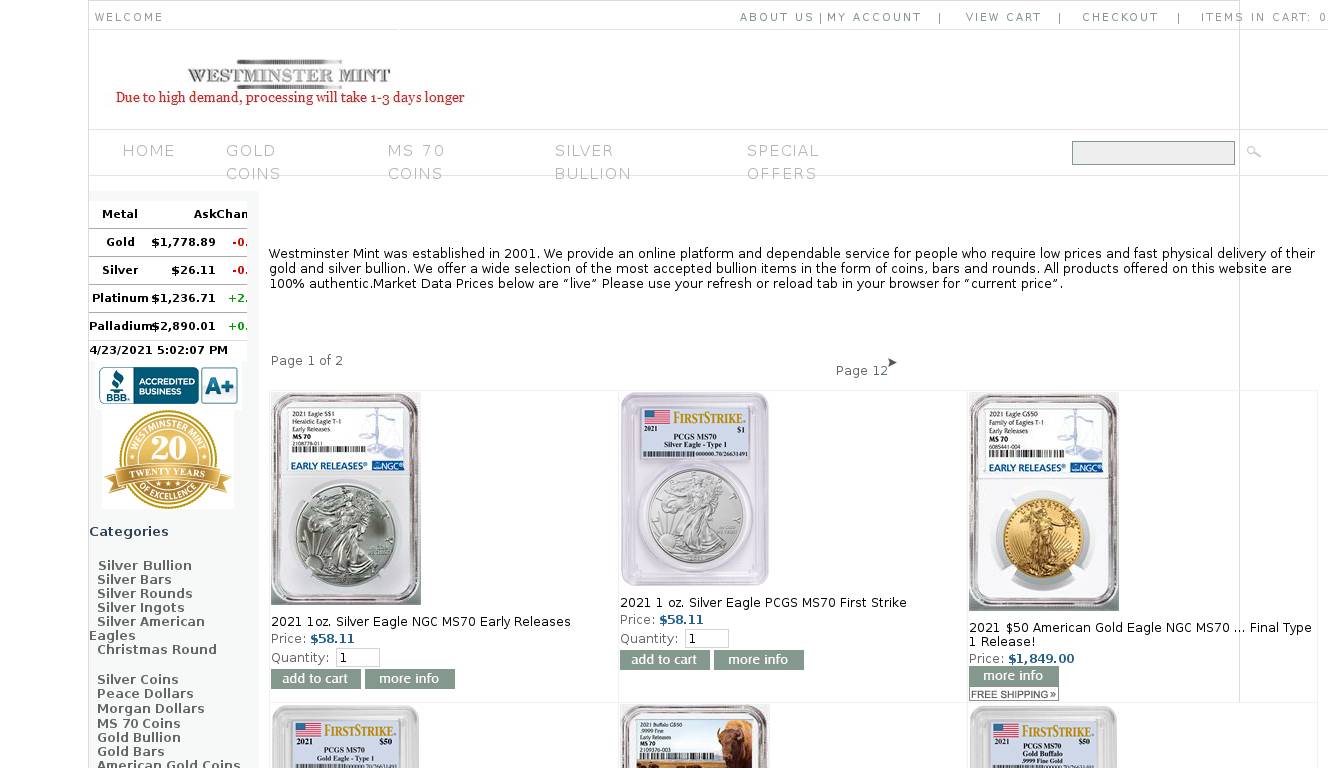 | Description | Gainesville Coins ® Offers Wholesale Pricing On Silver Coins, Silver Bars, Silver Bullion And Gold. Buy Silver And Gold Online, Or Call (813) 482-9300. |