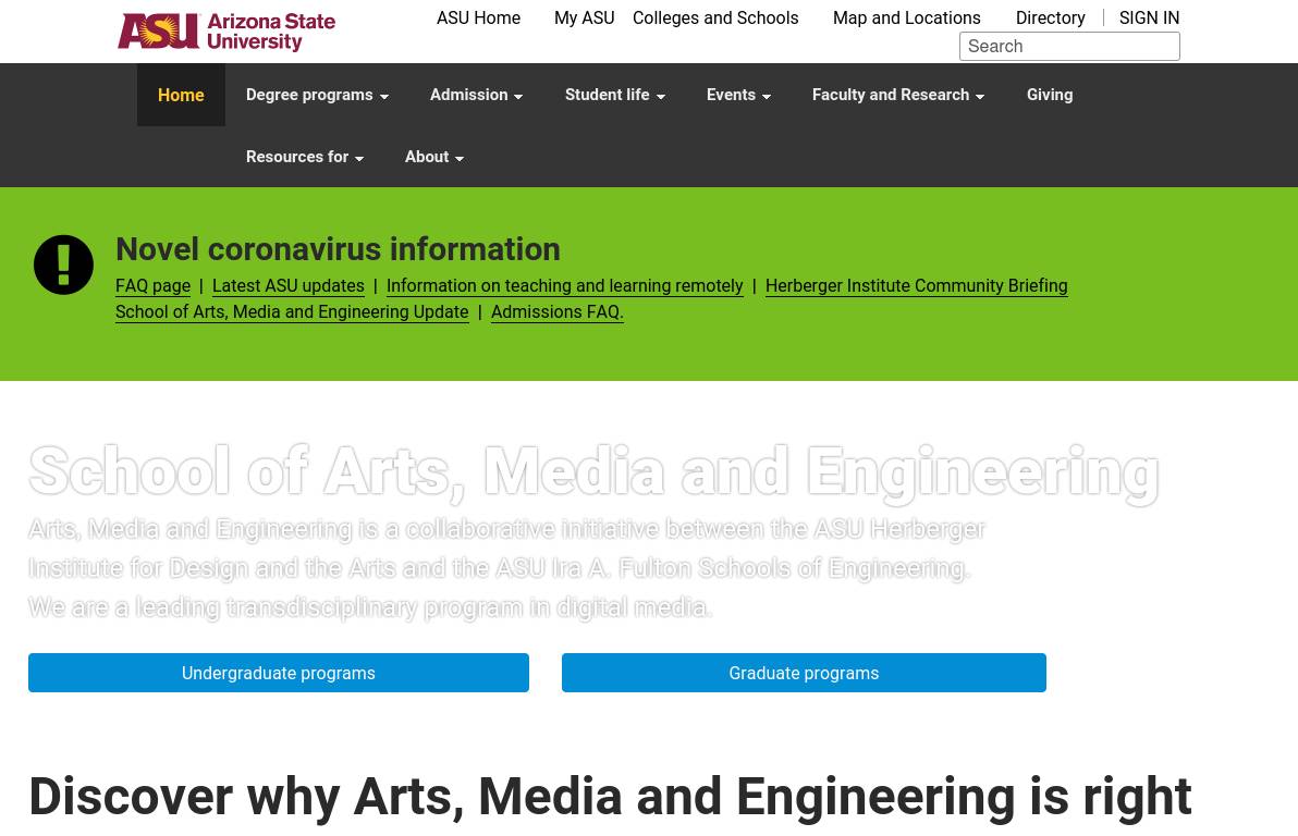 | Description | Built on a dynamic combination of disciplines unlike any other design and arts school in the nation, the ASU Herberger Institute connects, fuses and merges fields. Choose from architecture, art, dance, design, fashion, film, gaming, media arts and sciences, music, theatre, XRts and more, or create your own unique plan of study with our cross-institute degrees, minors and certificates. |