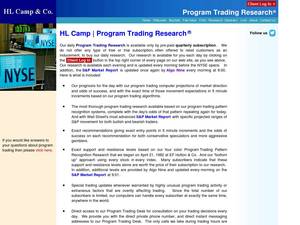 | Description | Program trading values, Fair value, index arbitrage values, and program trading probability graphs are updated daily. Index metrics include stock listings sorted by price change vs. the index, dividend yield, weight in the index, and capitalization. A calculator facilitates program trading what-if analyses. |