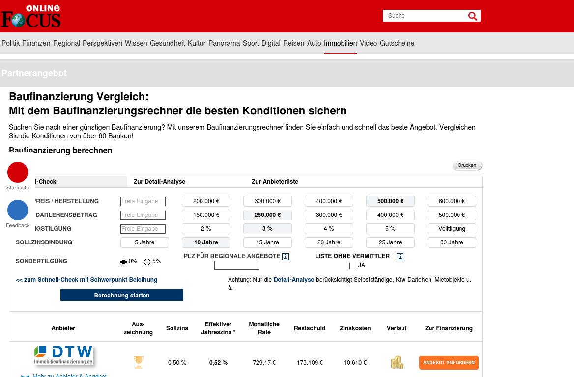 | Description | Finanzierung mit besten Konditionen: online berechnen, informieren, persönliche Beratung zur optimalen Baufinanzierung – über 500 Darlehensgeber! |