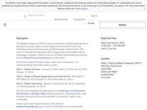 | Keywords | Eventbrite, Patent Series Part 3 - Patent Searching, Patent Series Part 3 - Patent Searching tickets, Patent Series Part 3 - Patent Searching Detroit, Patent Series Part 3 - Patent Searching Detroit tickets |