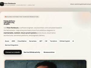 | Description | I'm a software architect, passionate about building things and doing good work. I work as a consultant and speaker, helping teams unlock their potential and spark innovation in their companies. |