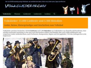 | Description | Volkslieder, Kinderlieder, Advent- & Weihnachtslieder mit Noten und Text sowie der Melodie im MIDI- und MP3-Format. Zu ausgewählten Liedern Karaoke-Versionen und mehrstimmige Arrangements und Klavierausgaben. |