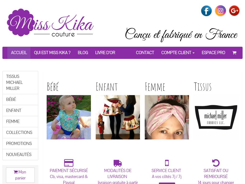| Description | Accessoires en Liberty - Miss Kika couture Stylisme et Créations originales d'accessoires en Liberty pour bébé, enfant, femme, et déco. France |