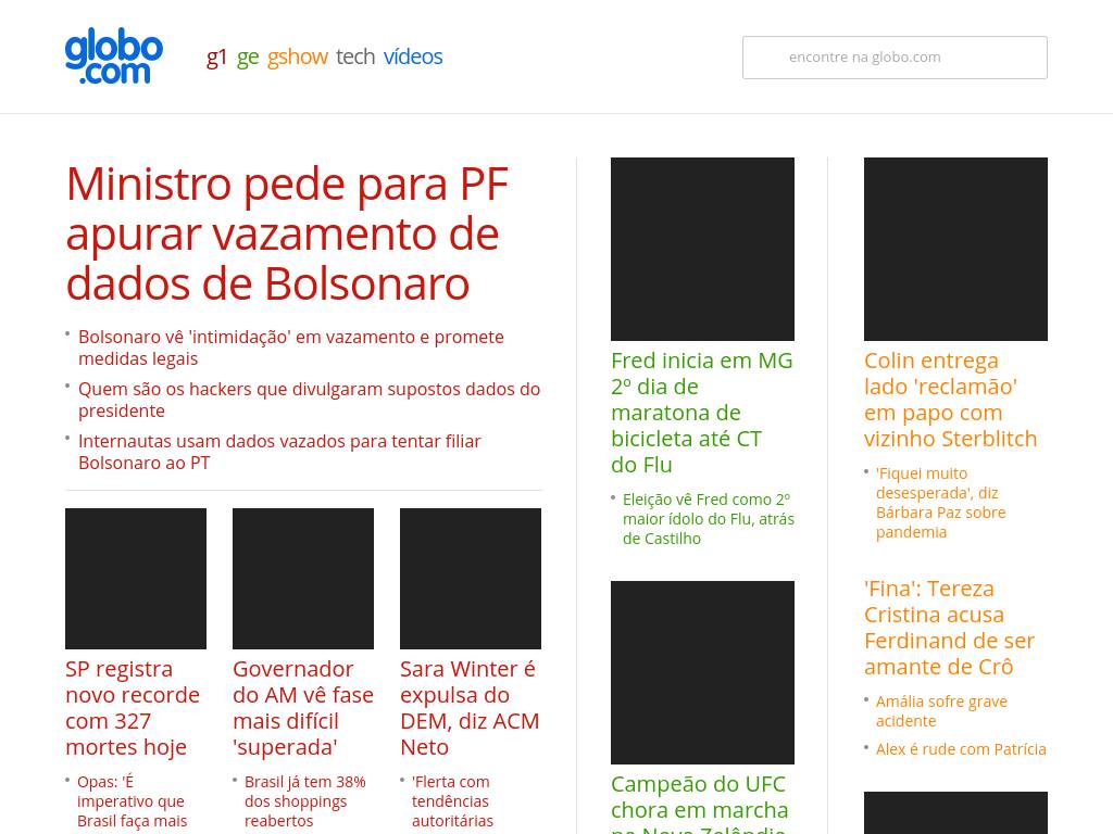 | Description | Últimas notícias do jornalismo, esporte, entretenimento e mais! Na globo.com você acompanha tudo que está acontecendo hoje no Brasil e no mundo. |
