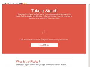 | Description | Fundraise to fight cancer in just three easy steps with Rally Against Cancer. Start a team at work or school, give $10, and cheer on your favorite team! |