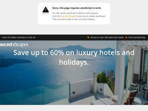 | Description | Secret Escapes ist ein Reiseclub, der seinen Mitgliedern große Ermäßigungen und tolle Angebote für handverlesene Luxushotels und Reisen bietet |