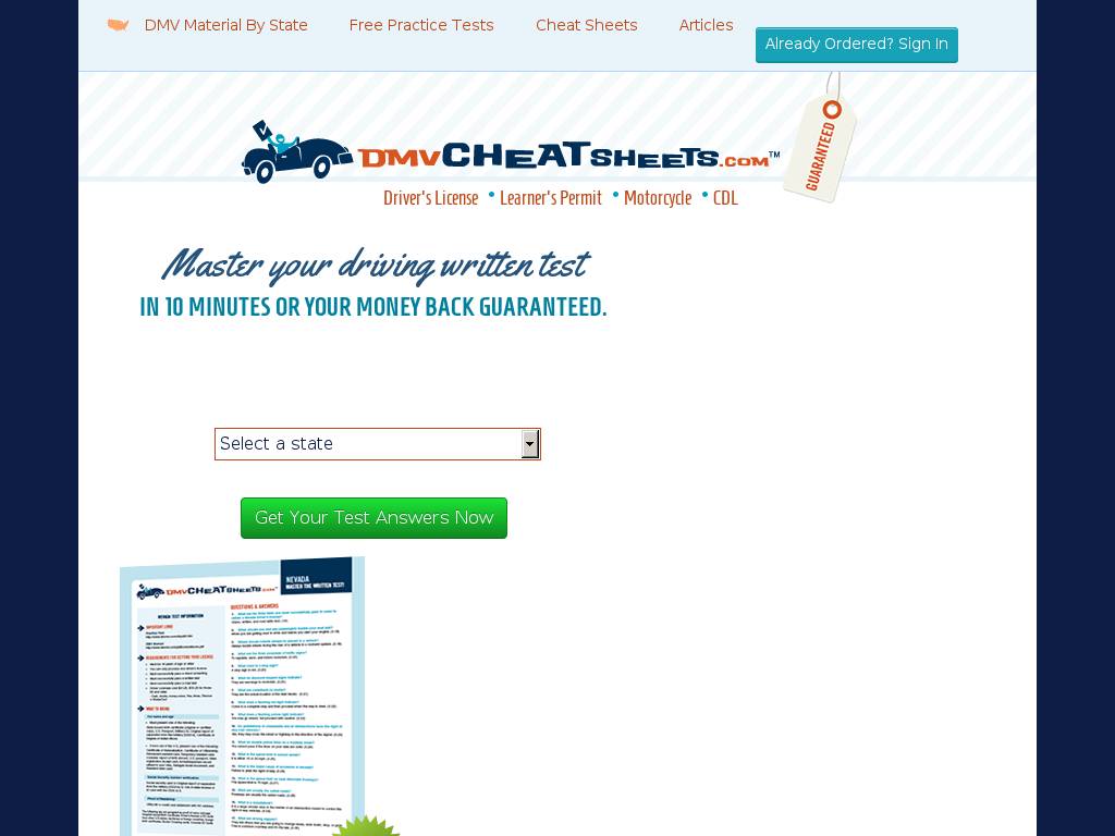 | Description | Get the answers now by taking our DMV Practice Tests for all 50 states. Pass your CDL, Motorcycle or Drivers License exam Guaranteed! |