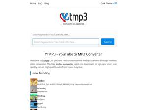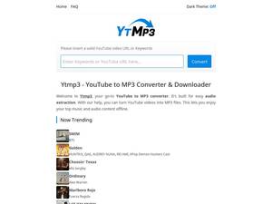 | Description | Ytmp3 is the fastest free YouTube to Mp3 converter and Online YouTube Converter. Download your YouTube videos as MP3 Music files up to 320kbps in high quality. |